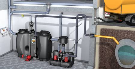 - W zakładach, w których powstają duże ilości osadów (np. w masarniach) należy zastosować wersjedwupompowe, ponieważ osadnik jest opróżniany oddzielnie. W razie potrzeby należy skontaktowaćsię z naszym serwisem.
