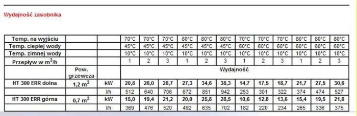 | Powierzchnia grzewcza górnej wężownicy | m2 | 1,2 |