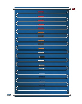 Tego typu konstrukcja zapewnia niezwykle skuteczny odbiór ciepła z absorbera, a zastosowanie dodatkowej izolacji bocznej i szyby pryzmatycznej pozwoliły na uzyskanie sprawności optycznej na poziomie powyżej η0 = 82,9%. Układ meandryczny pozwala na łączenie do 10 kolektorów w jednej baterii, co sprawia, że poza instalacjami domowymi idealnie nadają się do budowania dużych instalacji solarnych.