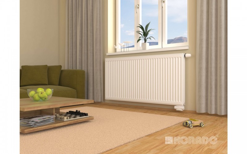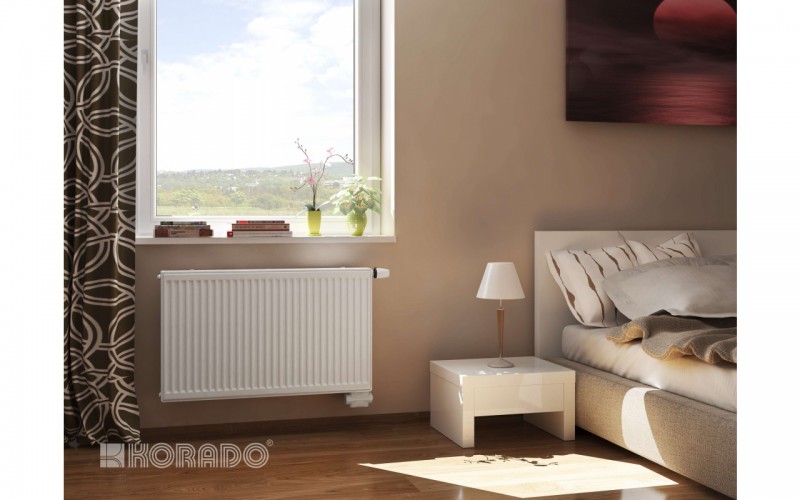Model RADIK VKU jest grzejnikiem płytowym w wykonaniu VENTIL KOMPAKT, które umożliwiaprawostronne lub lewostronne dolne podłączenie do systemu grzewczego z wymuszoną cyrkulacją.Grzejnik nie ma przyspawanych uszu, dlatego grzejniki typu 21, 22 i 33 można obracać.Uwaga: W przypadku typu 33 VKU osie końcówek nie są zlokalizowane symetrycznie w stosunku do głębokości grzejnika.