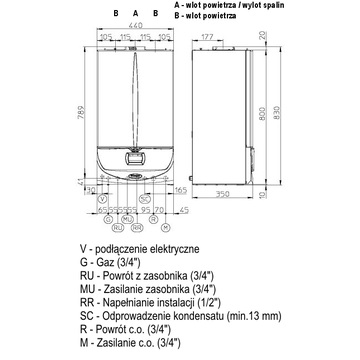 | 7 | Użyteczna sprawność cieplna (80/60°C) przy mocy nom./min. | % | 98,1 / 94,3 |