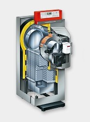 · Kompaktowy korpus kotła o dużej pojemności wodnej, z powierzchniami grzewczymi Inox-Crossal ze stali szlachetnej, zapewnia efektywne wykorzystanie ciepła kondensacji pary wodnej powstającej przy spalaniu gazu ziemnego.