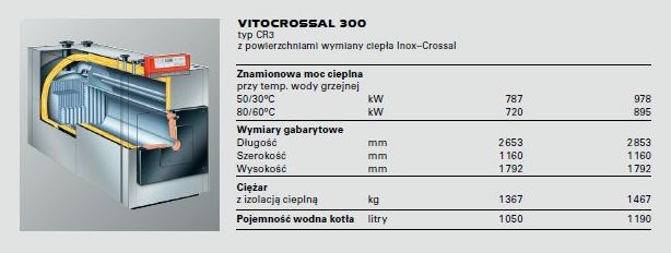 Wysokoefektywny kocioł kondensacyjny średniej mocy z najwyższej klasy technicznej, intensywnie wykorzystujący ciepło spalin dzięki zastosowaniu powierzchni grzewczych Inox-Crossal. Zastosowanie kotła Vitocrossal 300 redukuje koszty ogrzewania oraz minimalizuje emisję zanieczyszczeń. Zwarta budowa kotła umożliwia jego zabudowę w niskich pomieszczeniach budynków, co stanowi szczególną zaletę w przypadku modernizacji systemów grzewczych.